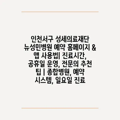 인천서구 성세의료재단 뉴성민병원 예약 홈페이지 & 앱 사용법| 진료시간, 공휴일 운영, 전연락 추천 팁 | 종합병원, 예약 시스템, 일요일 진료에 대해 자주 묻는 질문 TOP 5