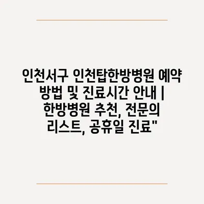 ✅ 인천탑한방병원 예약 방법과 진료시간을 지금 바로 알아보세요!