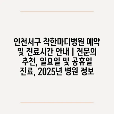 인천서구 착한마디병원 예약 및 진료시간 공지 | 전연락 추천, 일요일 및 공휴일 진료, 2025년 병원 정보에 대해 자주 묻는 질문 TOP 5