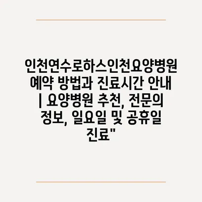 인천연수로하스인천요양병원 예약 방법과 진료시간 안내 | 요양병원 추천, 전문의 정보, 일요일 및 공휴일 진료”