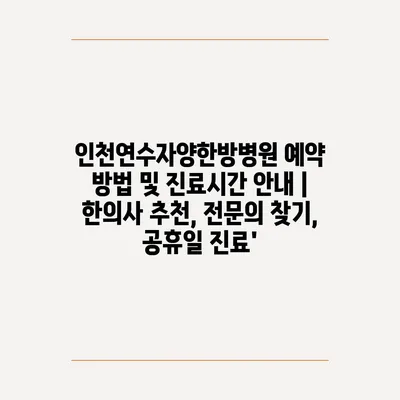 ✅ 인천연수자양한방병원 예약 방법과 진료시간을 자세히 알아보세요.