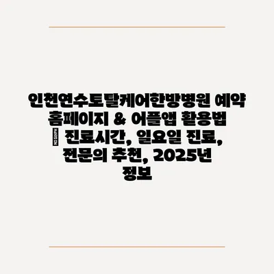 인천연수토탈케어한방병원 예약 홈페이지 & 어플앱 활용법 | 진료시간, 일요일 진료, 전연락 추천, 2025년 정보 에 대해 자주 묻는 질문 TOP 5