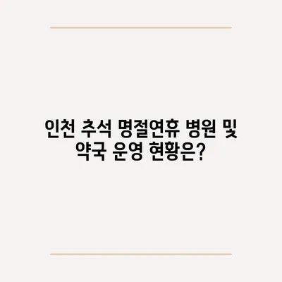 💡 인천 추석 연휴 동안 운영되는 병원과 약국 정보를 지금 바로 확인해 보세요. 💡