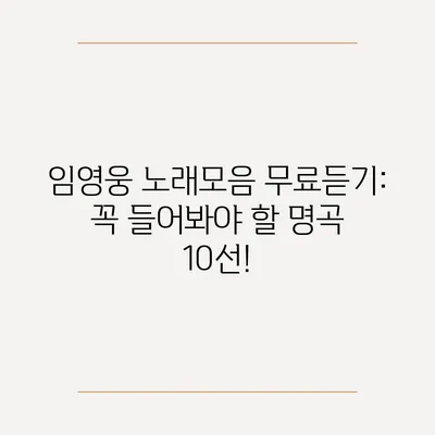 임영웅 노래모음 무료듣기: 꼭 들어봐야 할 명곡 10선!