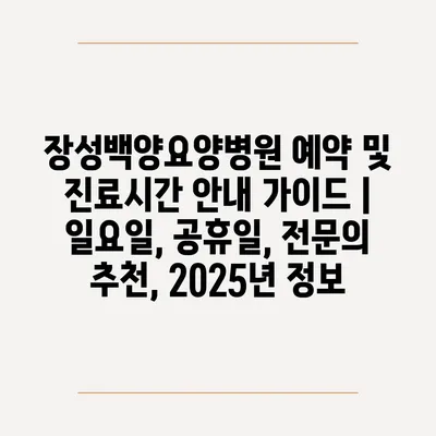 ✅ 장성백양요양병원의 진료시간과 예약 방법을 알아보세요.