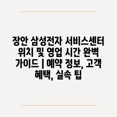 ✅ 장안 삼성전자 서비스센터의 영업 시간과 위치를 지금 확인해보세요!