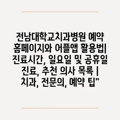 전남대학교치과병원 예약 홈페이지와 어플앱 활용법| 진료시간, 일요일 및 공휴일 진료, 추천 의사 목록 | 치과, 전연락, 예약 팁에 대해 자주 묻는 질문 TOP 5