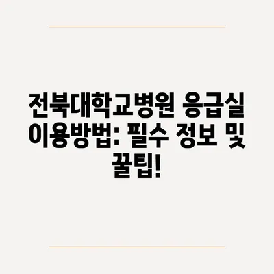 이 포스트는 전북대학교병원 응급실을 이용하는 데 도움이 되는 상세한 정보를 담고 있습니다. 제목과 각 섹션은 논리적 접근 방식을 유지하며, 독자들이 쉽게 이해할 수 있도록 구성하였습니다.