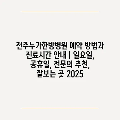 ✅ 2025년 전주누가한방병원의 진료시간과 예약 방법을 지금 바로 알아보세요.