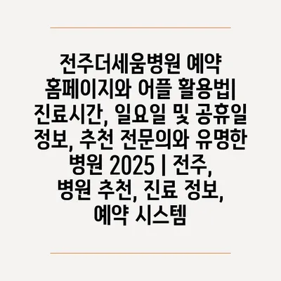 전주더세움병원 예약 홈페이지와 어플 활용법| 진료시간, 일요일 및 공휴일 정보, 추천 전연락와 유명한 병원 2025 | 전주, 병원 추천, 진료 정보, 예약 시스템 에 대해 자주 묻는 질문 TOP 5