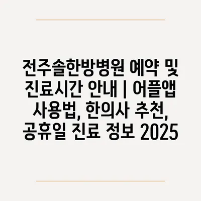 전주솔한방병원 예약 및 진료시간 공지 | 어플앱 사용법, 한의사 추천, 공휴일 진료 정보 2025