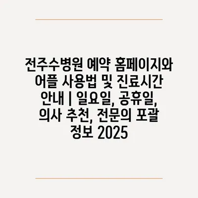 전주수병원 예약 홈페이지와 어플 사용법 및 진료시간 공지 | 일요일, 공휴일, 의사 추천, 전연락 포괄 정보 2025 에 대해 자주 묻는 질문 TOP 5