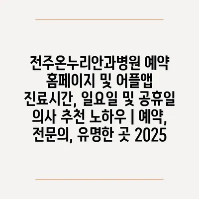 전주온누리안과병원 예약 홈페이지 및 어플앱 진료시간, 일요일 및 공휴일 의사 추천 노하우 | 예약, 전연락, 유명한 곳 2025에 대해 알아보겠습니다.