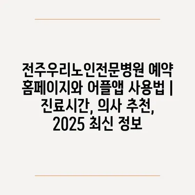 전주우리노인전문병원 예약 홈페이지와 어플앱 사용법 | 진료시간, 의사 추천, 2025 최신 정보에 대해 알아보겠습니다.