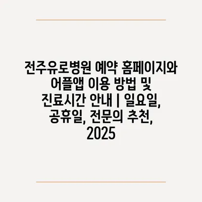 전주유로병원 예약 홈페이지와 어플앱 이용 방법 및 진료시간 공지 | 일요일, 공휴일, 전연락 추천, 2025 에 대해 자주 묻는 질문 TOP 5