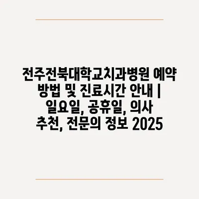 전주전북대학교치과병원 예약 방법 및 진료시간 공지 | 일요일, 공휴일, 의사 추천, 전연락 정보 2025 에 대해 자주 묻는 질문 TOP 5