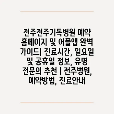 ✅ 전주전주기독병원의 예약 방법과 진료 시간을 상세히 알아보세요.
