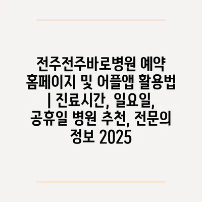 ✅ 전주전주바로병원의 진료시간과 예약 팁을 지금 바로 알아보세요!