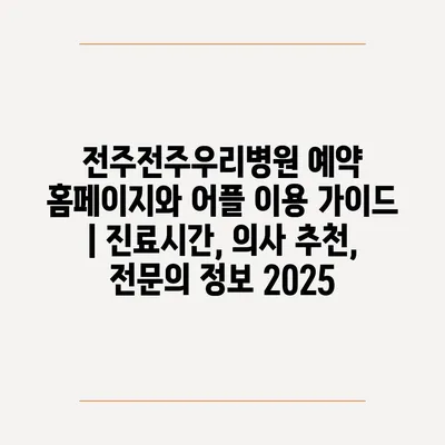 전주전주우리병원 예약 홈페이지와 어플 이용 가이드 | 진료시간, 의사 추천, 전문의 정보 2025