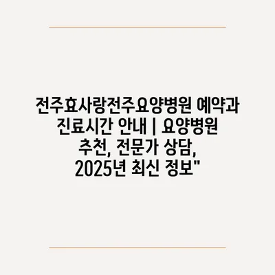 전주효사랑전주요양병원 예약과 진료시간 공지 | 요양병원 추천, 전문가 상담, 2025년 최신 정보” 에 대해 자주 묻는 질문 TOP 5