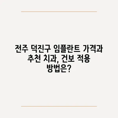 전주 덕진구에서 임플란트 시술을 고려하시는 분들을 위해, 임플란트 가격, 추천 치과, 건강보험 적용 방법에 대해 상세히 설명드리겠습니다. 전주 덕진구 임플란트 가격 추천 치과 건보 적용 방법에 대한 많은 정보가 있으며, 이 글을 통해 이해도를 높이고, 결정 사항에 도움이 되길 바랍니다.