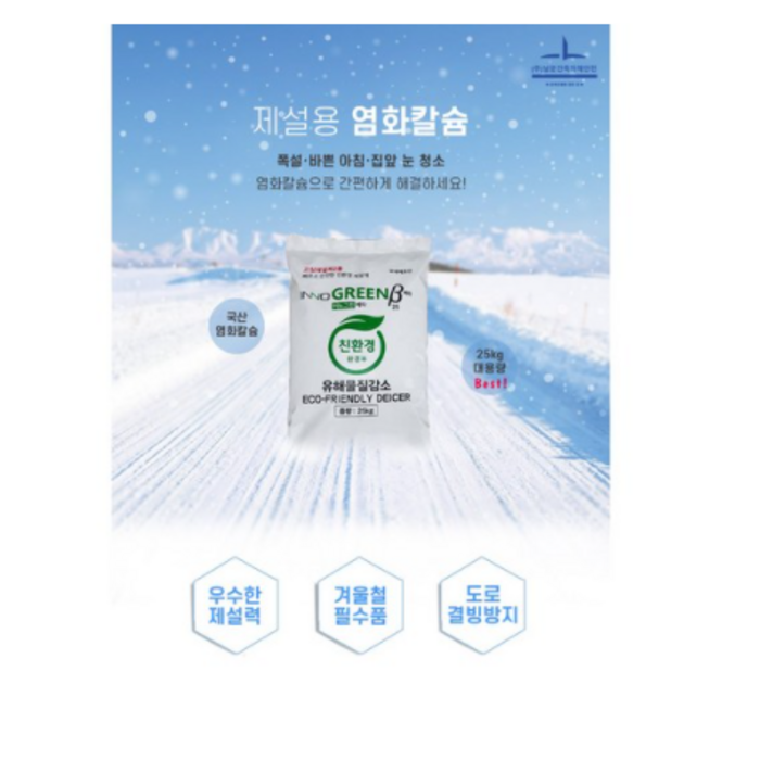 SHM2 SHM3 친환경인증 염화칼슘 친환경인증 제설제 친환경 염화칼슘 25KG