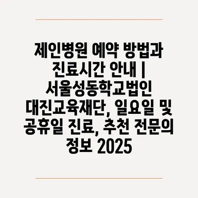 제인병원 예약 방법과 진료시간 공지 | 서울성동학교법인 대진교육재단, 일요일 및 공휴일 진료, 추천 전연락 정보 2025에 대해 자주 묻는 질문 TOP 5