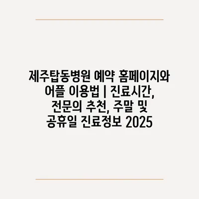 제주탑동병원 예약 홈페이지와 어플 이용법 | 진료시간, 전연락 추천, 주말 및 공휴일 진료정보 2025 에 대해 자주 묻는 질문 TOP 5