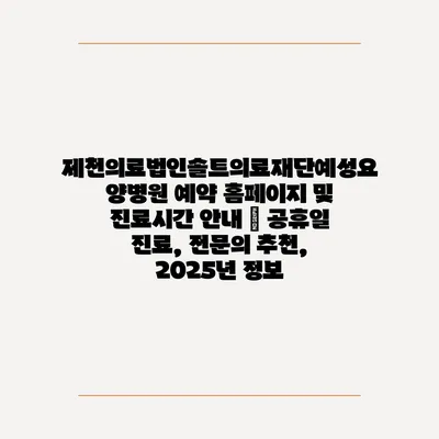 제천의료법인솔트의료재단예성요양병원 예약 홈페이지 및 진료시간 공지 | 공휴일 진료, 전연락 추천, 2025년 정보 에 대해 자주 묻는 질문 TOP 5