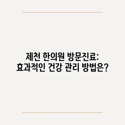 제천 한의원 방문진료: 효과적인 건강 관리 방법은?