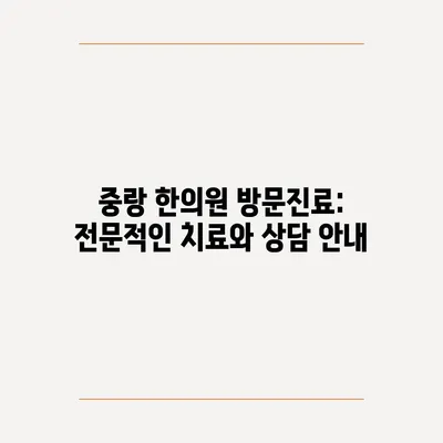 중랑 한의원 방문진료: 전문적인 치료와 상담 안내