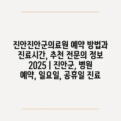 ✅ 진안진안군의료원 예약 방법을 지금 바로 알아보세요!