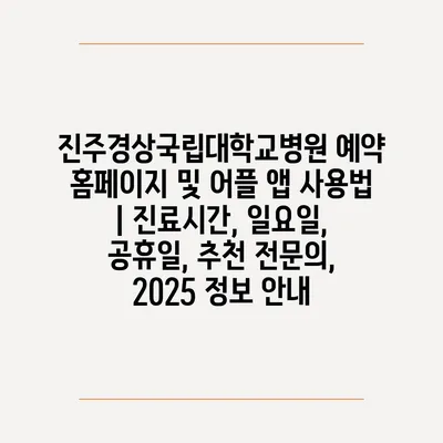 진주경상국립대학교병원 예약 홈페이지 및 어플 앱 사용법 | 진료시간, 일요일, 공휴일, 추천 전문의, 2025 정보 안내
