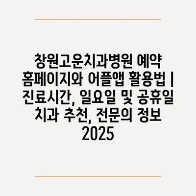 창원고운치과병원 예약 홈페이지와 어플앱 활용법 | 진료시간, 일요일 및 공휴일 치과 추천, 전연락 정보 2025에 대해 알아보겠습니다.