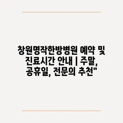 ✅ 창원명작한방병원 예약 방법과 진료시간을 지금 바로 알아보세요!
