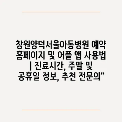 창원양덕서울아동병원 예약 홈페이지 및 어플 앱 사용법 | 진료시간, 주말 및 공휴일 정보, 추천 전문의”