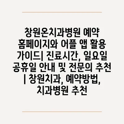 ✅ 창원온치과병원 예약 방법과 전문의 추천을 지금 바로 알아보세요!