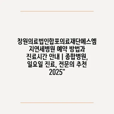 창원의료법인합포의료재단에스엠지연세병원 예약 방법과 진료시간 공지 | 종합병원, 일요일 진료, 전연락 추천 2025에 대해 알아보겠습니다.