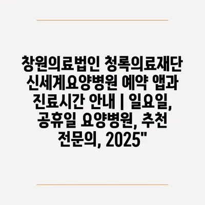 창원의료법인 청록의료재단 신세계요양병원 예약 앱과 진료시간 공지 | 일요일, 공휴일 요양병원, 추천 전연락, 2025에 대해 자주 묻는 질문 TOP 5