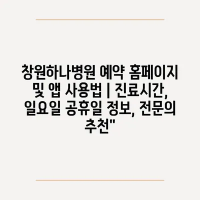 ✅ 창원하나병원 예약 방법을 자세히 알아보세요.