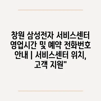 ✅ 창원 삼성전자 서비스센터의 위치와 운영시간을 지금 바로 확인하세요!