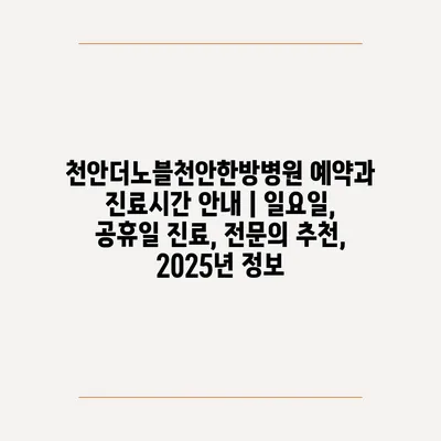 천안더노블천안한방병원 예약과 진료시간 공지 | 일요일, 공휴일 진료, 전연락 추천, 2025년 정보 에 대해 자주 묻는 질문 TOP 5