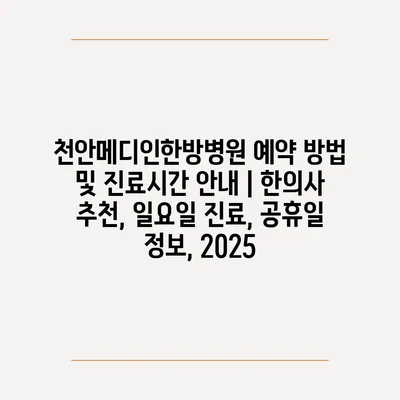 천안메디인한방병원 예약 방법 및 진료시간 공지 | 한의사 추천, 일요일 진료, 공휴일 정보, 2025 에 대해 자주 묻는 질문 TOP 5