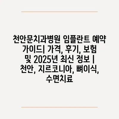 천안문치과병원 임플란트 예약 설명서| 가격, 후기, 보험 및 2025년 최신 정보 | 천안, 지르코니아, 뼈이식, 수면치료 에 대해 자주 묻는 질문 TOP 5