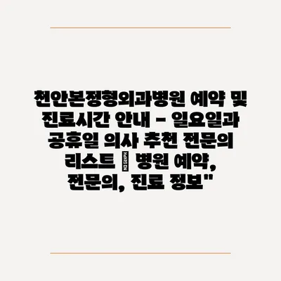 천안본정형외과병원 예약 및 진료시간 안내 – 일요일과 공휴일 의사 추천 전문의 리스트 | 병원 예약, 전문의, 진료 정보”
