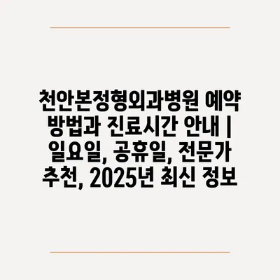 천안본정형외과병원 예약 방법과 진료시간 공지 | 일요일, 공휴일, 전문가 추천, 2025년 최신 정보에 대해 자주 묻는 질문 TOP 5
