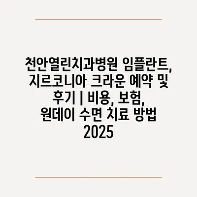 천안열린치과병원 임플란트, 지르코니아 크라운 예약 및 후기 | 비용, 보험, 원데이 수면 치료 방법 2025에 대해 알아보겠습니다.