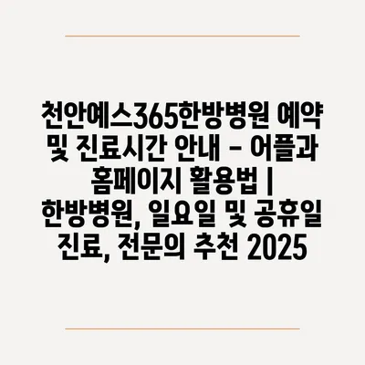 천안예스365한방병원 예약 및 진료시간 공지 – 어플과 홈페이지 활용법 | 한방병원, 일요일 및 공휴일 진료, 전연락 추천 2025