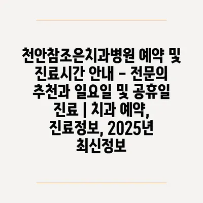 ✅ 천안참조은치과병원의 진료시간과 예약 방법을 자세히 알아보세요.