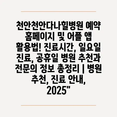 천안천안다나힐병원 예약 홈페이지 및 어플 앱 활용법! 진료시간, 일요일 진료, 공휴일 병원 추천과 전문의 정보 총정리 | 병원 추천, 진료 안내, 2025″